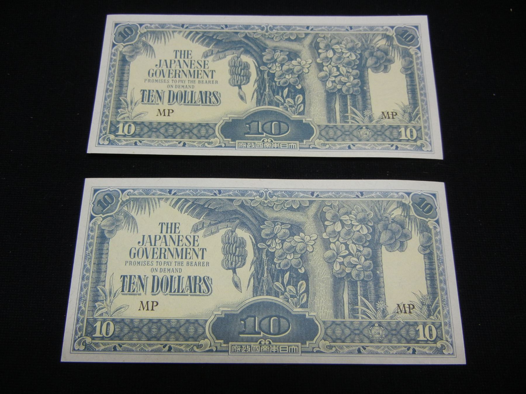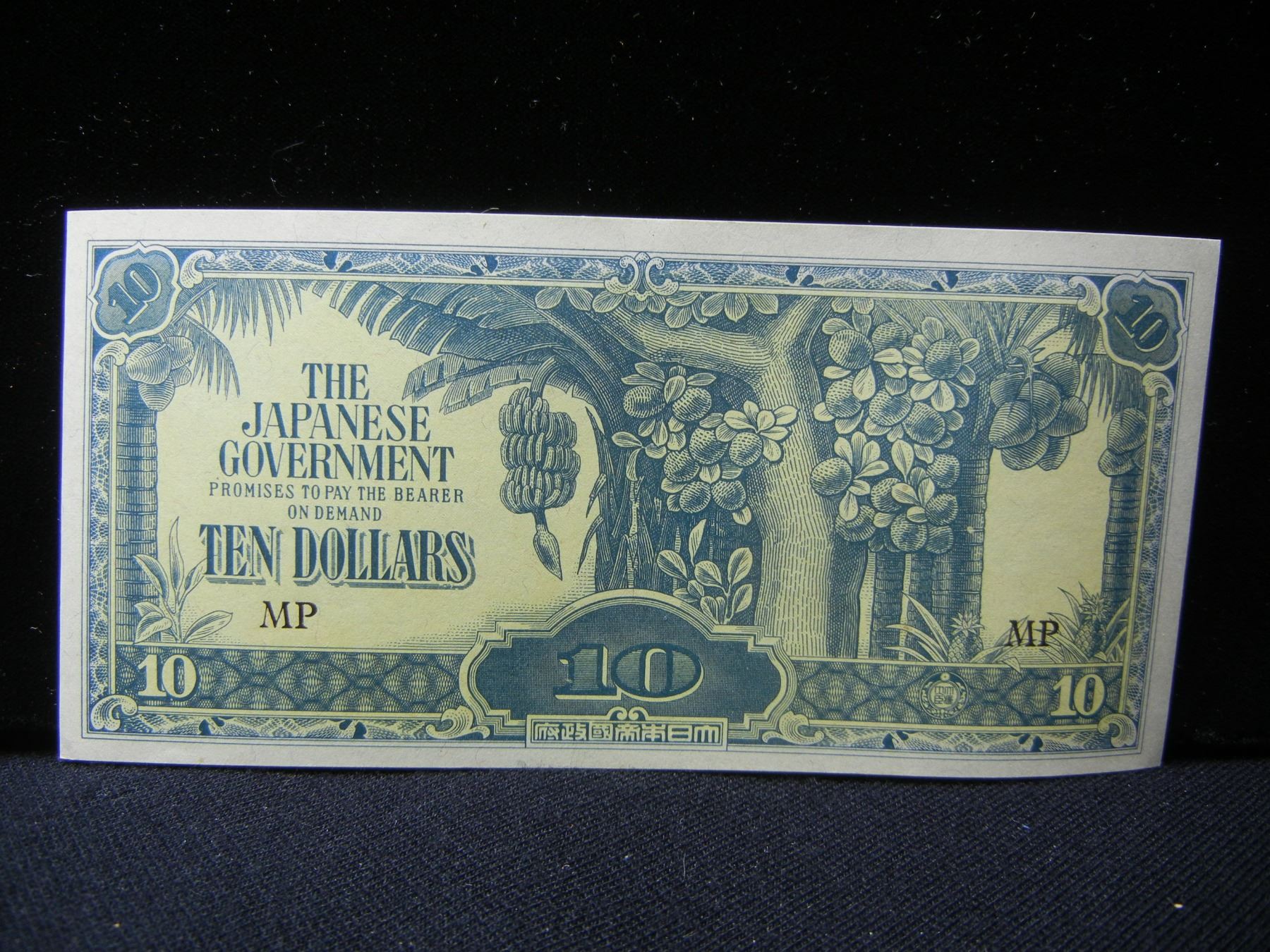 World War II Japanese Uncirculated 10 Dollars Malaya Occupation Note.