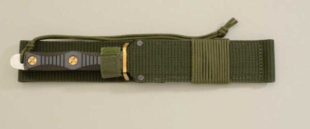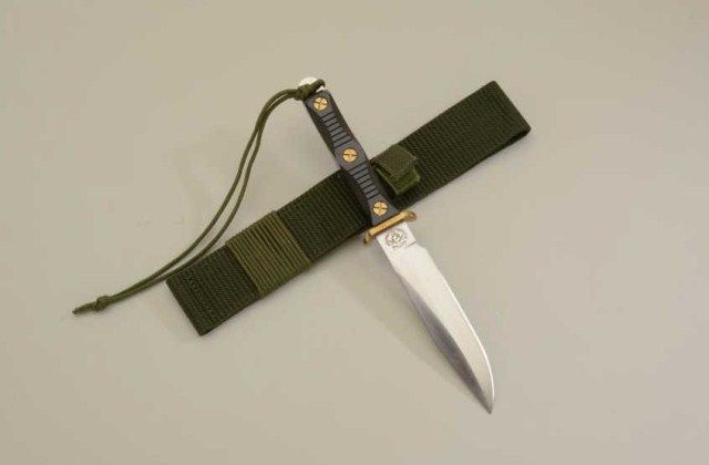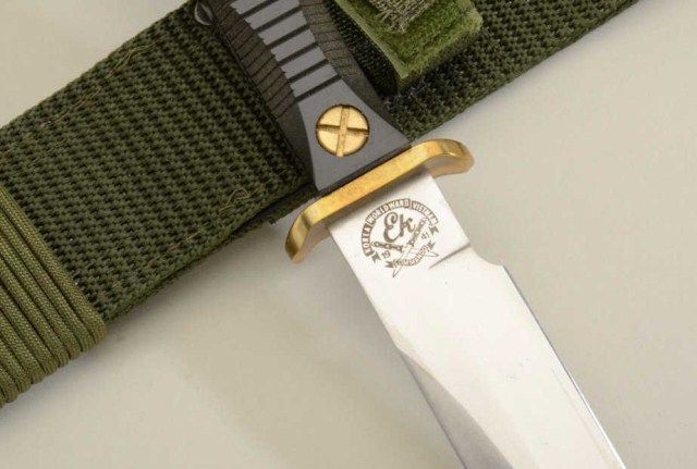 World War II, Korea, Vietnam Commando Commemorative Ek knife with green woven sheath in like new condition and in factory cardboard box, approx. 13” overall. Est.: $50-$75.