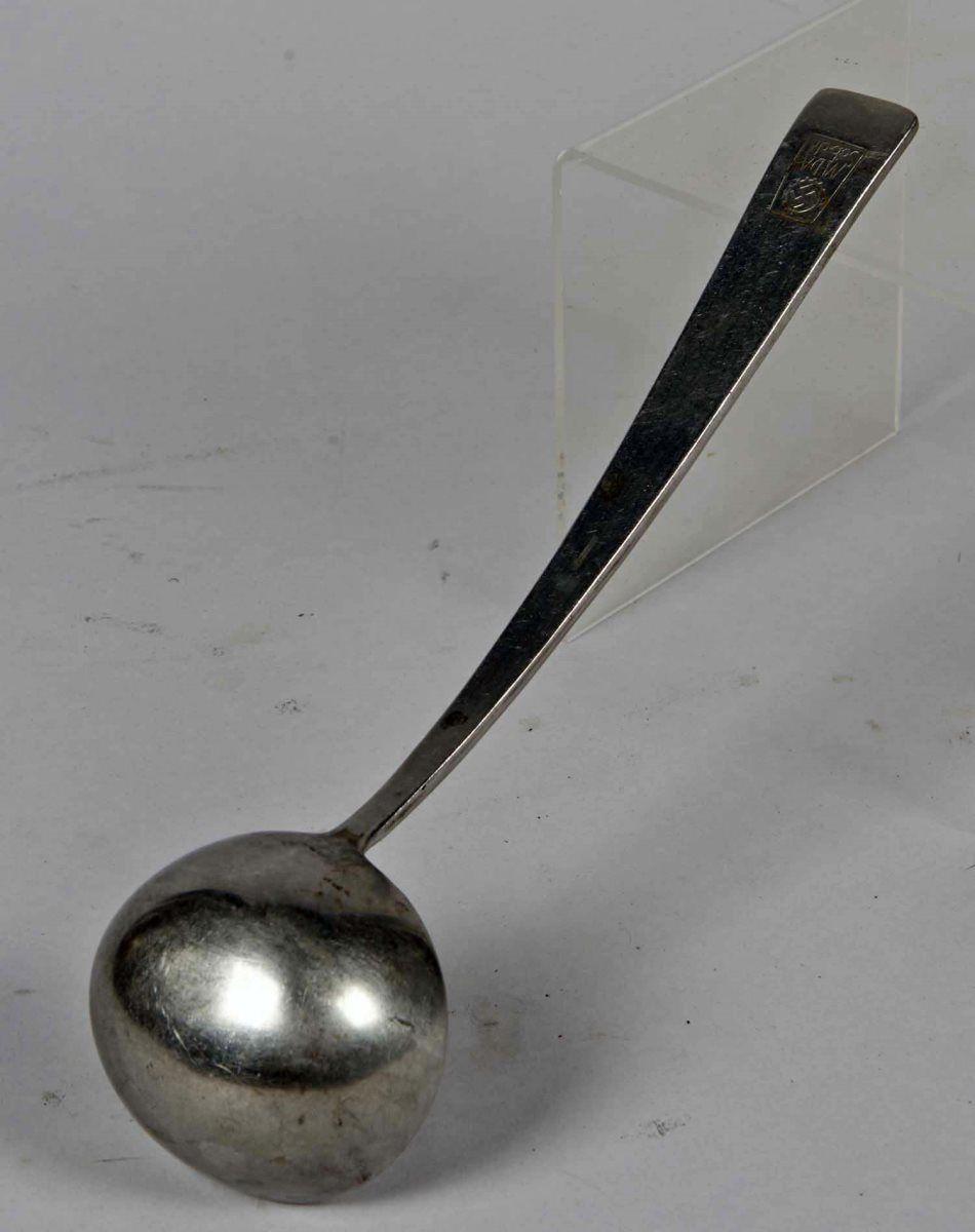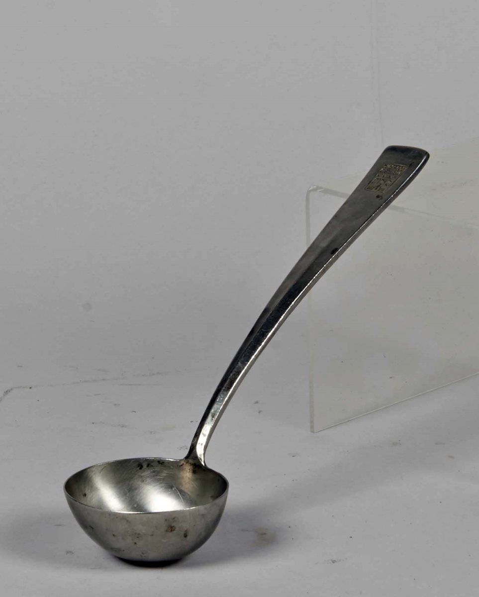 Stainless Steel Marked "MDA Sch.dA" w/ swastika & cog wheel on back ("Modell des Amtes Schönheit der Arbeit" or "Model approved by the office for pleasant work"), Marked "RKW Kantinen DR RBD Augsburg" w/ crude eagle on front (likely from a military cantee