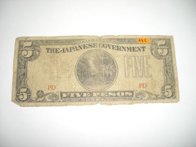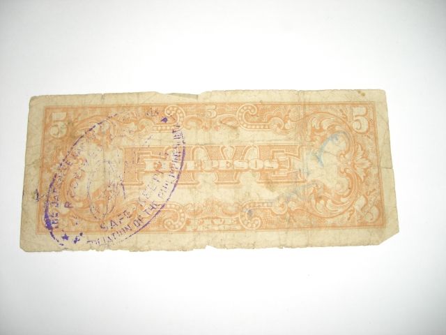 World War II Occupied Japanese 5 Pesos Bill *PLEASE LOOK AT PICTURE TO DETERMINE GRADE - NICE NOTE*!! ***Coin, Currency & All Items Listed in this auction - Grades, Conditions and Values are not Safe Deposit Coins LLC Responsibilty. Grades, Condition and Values are determined by Consigner(s) & Buyers ONLY***