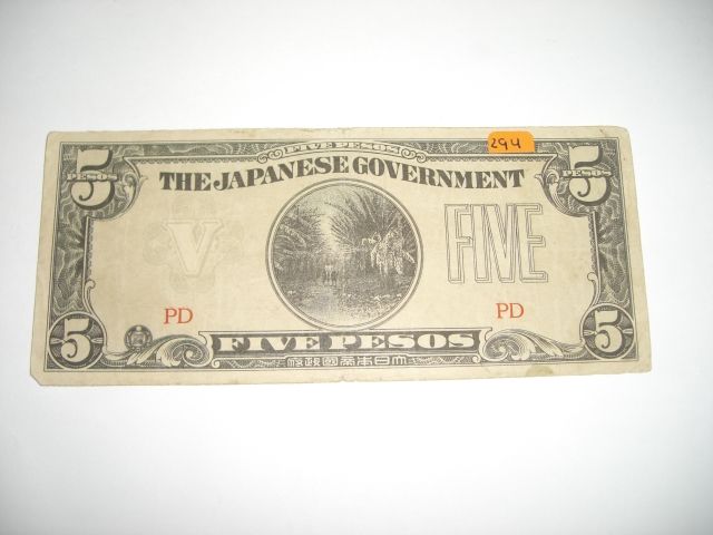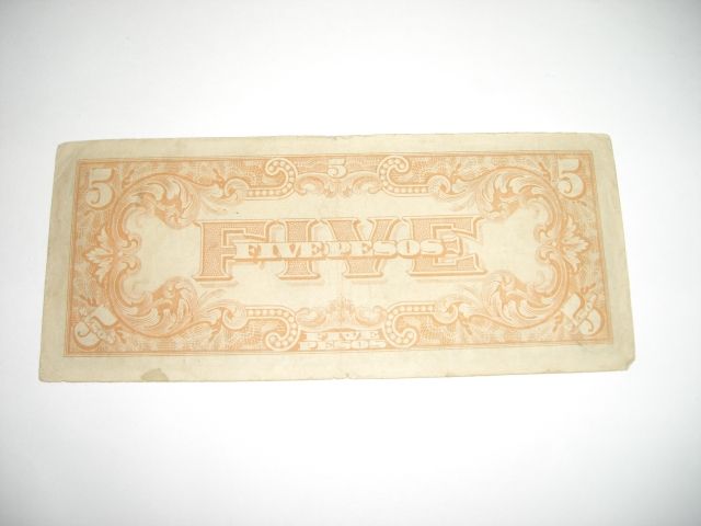 World War II Occupied Japanese 5 Pesos Bill *PLEASE LOOK AT PICTURE TO DETERMINE GRADE - NICE NOTE*!! ***Coin, Currency & All Items Listed in this auction - Grades, Conditions and Values are not Safe Deposit Coins LLC Responsibilty. Grades, Condition and Values are determined by Consigner(s) & Buyers ONLY***