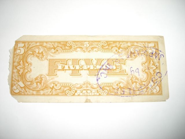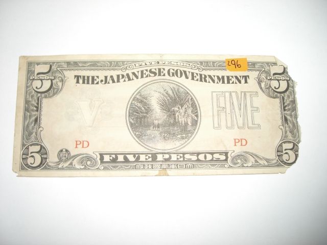 World War II Occupied Japanese 5 Pesos Bill *PLEASE LOOK AT PICTURE TO DETERMINE GRADE - NICE NOTE*!! ***Coin, Currency & All Items Listed in this auction - Grades, Conditions and Values are not Safe Deposit Coins LLC Responsibilty. Grades, Condition and Values are determined by Consigner(s) & Buyers ONLY***