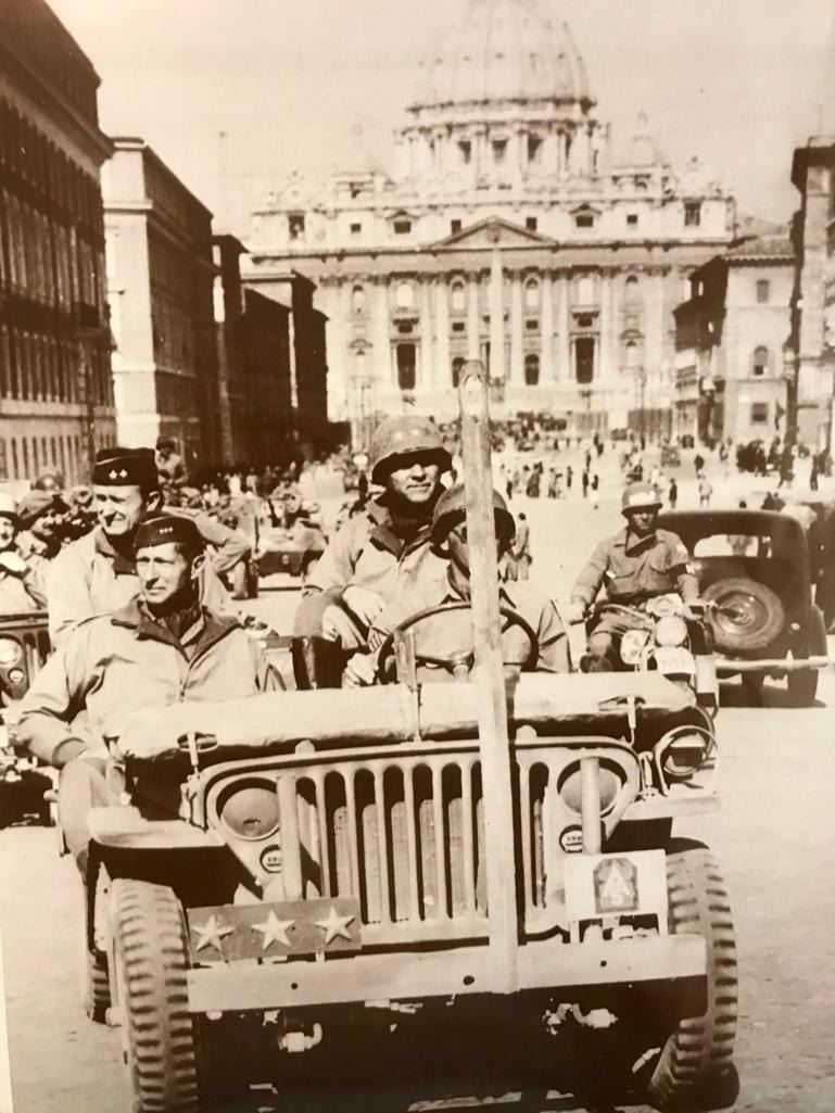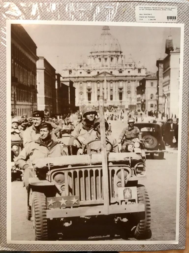 U.S. General Mark Clark at St Peter's Basilica, Rome Italy, June 1944, sepia-tone photo print. Created in the early 1990's for The American Heritage Galleries. Printed on heavy cardstock. In original packaging. 11" X 14".Â