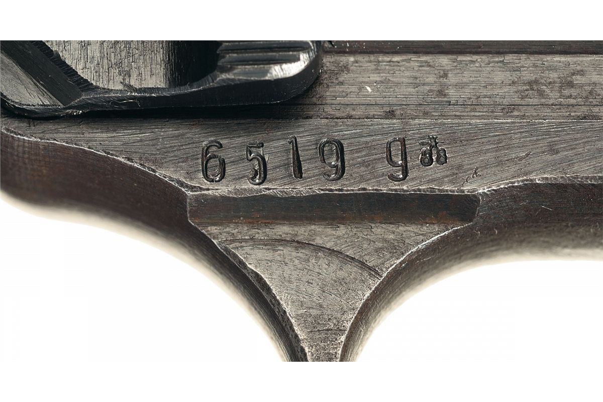 Very fine. The pistol retains 80% plus original blue finish with the front grip strap a mottled brown patina. The grips are excellent with a few minor handling marks. Mechanically excellent.
