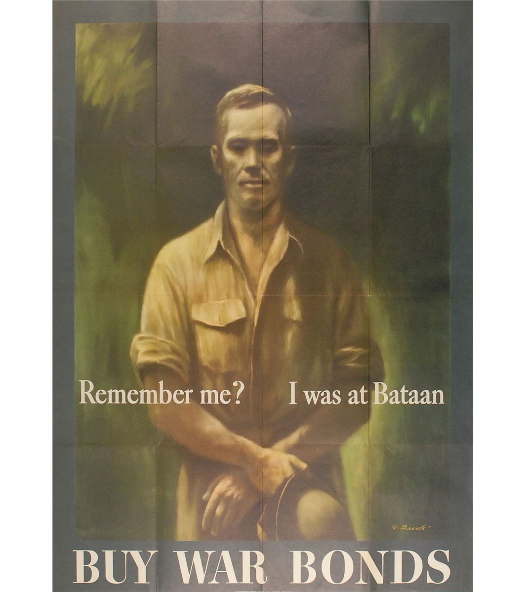 Original color 28.5 x 40 World War II patriotic poster from 1943, with artwork done by Alexander Brook, showing a ghostly image of a soldier, with “Remember me? I was at Bataan,” printed across the image. Printed along the bottom edge is “U.S. Government Printing Office: 1943-O-513139.” In fine condition, with expected folds.