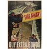 Collection of four original color World War II posters from 1943-1945, ranging in size from 18.5 x 26 to 28.5 x 40. The first shows the hand of Uncle Sam offering bonds to a man in overalls and reads,“Dig Down Deep! Buy twice as many Bonds in the Mighty 7th War Bond Loan”; the second shows a dead sailor washed up on a beach, and reads, “A careless word…a needless loss”; the third shows a matronly woman in front of a blue-star flag, urging citizens to cut back on needless travel; and the fourth shows two sailors on the bridge of a submarine, with “Fire Away!,” printed at the top and, “In memory U.S.S. Dorado,” printed in the upper left. In overall fine condition, with expected storage folds (with a few small separations) and some old tape toning to edges of the “Fire Away!” poster.