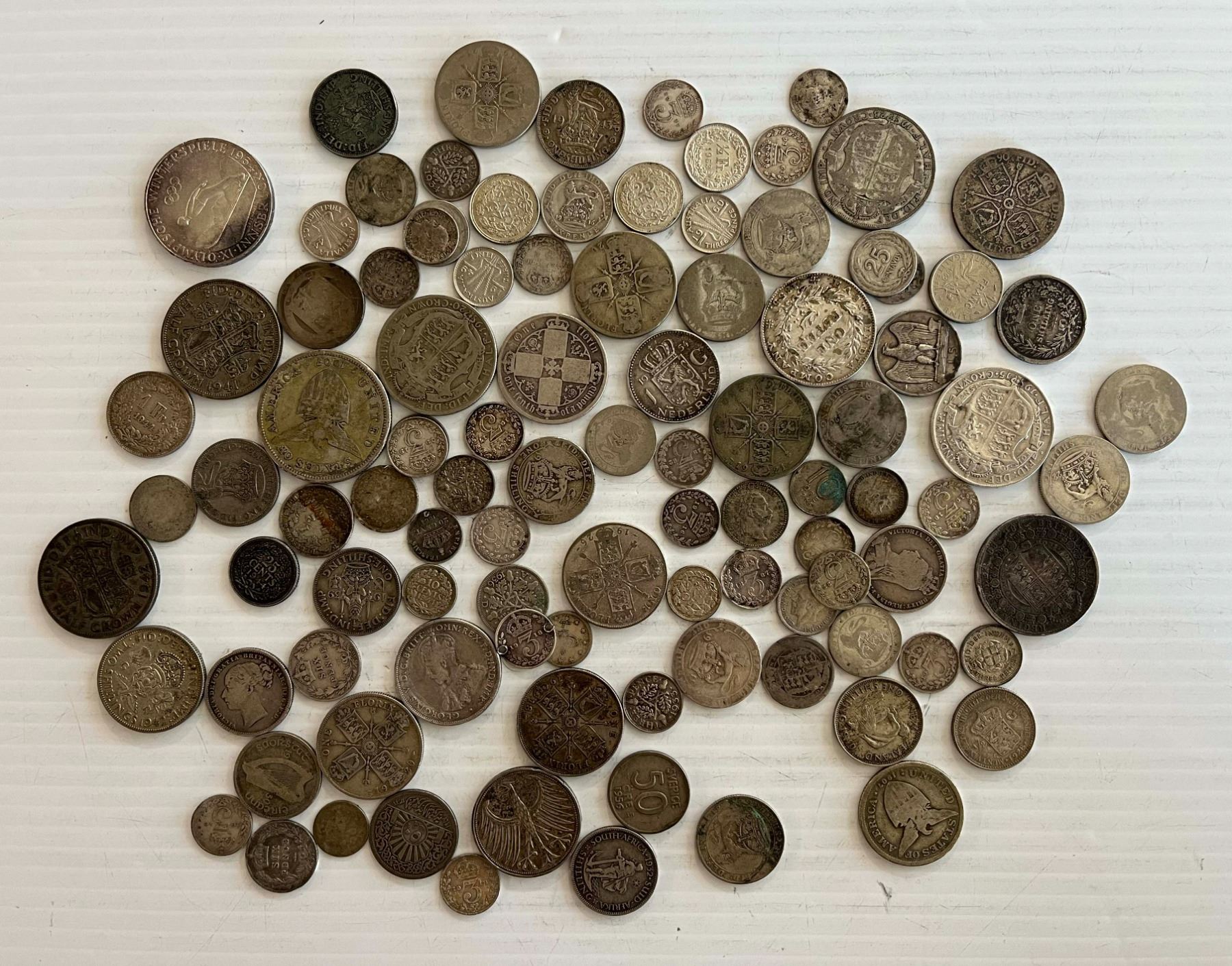 World coin lot; Assorted group of World silver coins. Approx. 500 grams