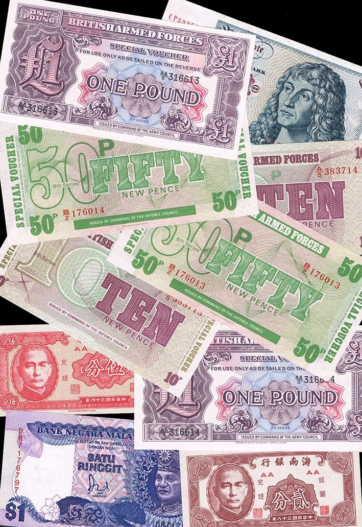 Various countries, with a set of Australia last paper issue training notes. Poor to uncirculated. (44)