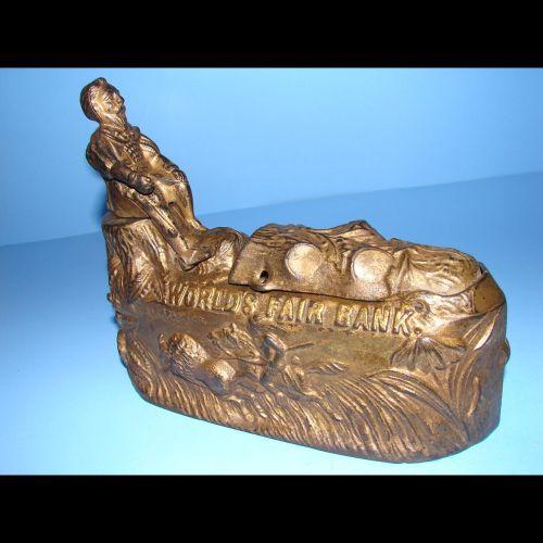 World's Fair Cast Iron Mechanical Bank Excellent Condition. Has Coin Trap. Patent Date1875. Weight 3 1/2. br>
