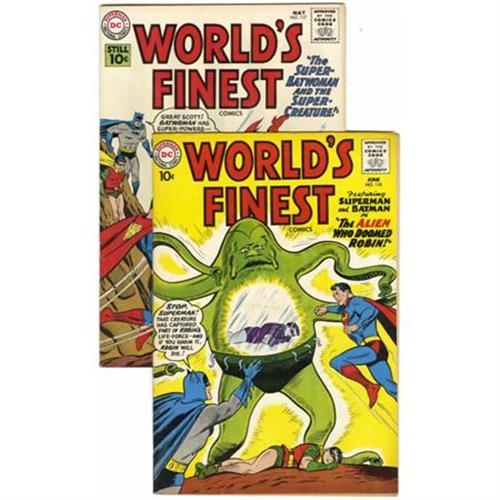 <B>World's Finest Comics #110 and 117 Group (DC, 1960-61).</B></I> Includes #110 (apparent VG/FN with color touch) and 117 (Batwoman cover, FN+). Art by Curt Swan, Jim Mooney, Lee Elias, and Dick Sprang. Approximate Overstreet value for group = $50.<BR><BR><b>Shipping:</b> Comics - Unslabbed (<a target="_blank" href="http://www.heritageauctions.com/common/shipping.php">view shipping information</a>)