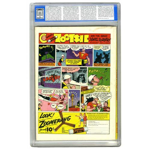 <B>World's Finest Comics #12 (DC, 1943) CGC VF+ 8.5 Off-white pages.</B></I> You've no doubt heard of the Batmobile. Also the Batplane, the Batcopter, the... BatIceBoat? Whatever you wish to call it, here it is, on this Jack Burnley cover! Making his last appearance this issue is the original "fat" Alfred, Bruce Wayne's faithful butler, in a Batman story drawn by Dick Sprang. Other features include a Boy Commandos story by Joe Simon and a Green Arrow tale by Cliff Young. This attractive copy currently tops the CGC census chart for this issue. Overstreet 2005 VF 8.0 value = $863; VF/NM 9.0 value = $1,332. CGC census 11/05: 1 in 8.5, none higher.