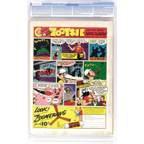 <B>World's Finest Comics #12 Davis Crippen ("D" Copy) pedigree (DC, 1943) CGC FN/VF 7.0 Off-white pages.</B></I> The appealing art of Jack Burnley graces this issue's cover. Inside the book, there's Dick Sprang art on Batman and Joe Simon art on the Boy Commandos. Overstreet 2006 FN 6.0 value = $417; VF 8.0 value = $869. CGC census 6/06: 6 in 7.0, 8 higher. <I>From the Crippen Collection.</B></I> <BR><BR><B>Important notice:</B> Heritage usually auctions material at the rate of 200-250 lots per hour. On some occasions eBay Live bid software or the Internet may not be able to keep up with the pace of the auction. We recommend placing a realistic absentee bid now as insurance to avoid disappointment. Occasionally the auctioneer may eliminate or reject an eBay Live bid, and the auctioneer may also reopen a lot after the close of the eBay live bidding (usually because we missed an audience bid), and may reject your bid even if it shows you as the winning bidder. By bidding via eBay Live, you agree that Heritage may award the lot to another bidder at its sole discretion under the circumstances described above or any other reasonable circumstances. Since eBay bids are not shown to us until we open the lot on the floor, we treat those bids just like floor bids. In most cases the floor responds before the eBay bid is presented to us, due to Internet lag time, so for consistency we have made it a policy that floor bids are always considered first over tie eBay live bids. Also please note that all Heritage lots purchased through eBay Live carry a 22.5% Buyer's Premium. Please make sure you read the Terms and Conditions before you bid. This lot is being auctioned in conjunction with a live floor auction by Heritage Auction Galleries. All final auction and invoice information will be supplied by Heritage Auction Galleries, and all other information should be considered preliminary. Lot:41001 <BR><BR><B>Winning Notification and Billing:</B> After the FINAL session in this auction is complete, Heritage will send e-mail and snail mail invoices. This process normally takes several days. All final auction and invoice information will be supplied by Heritage Auction Galleries, and all other information should be considered preliminary. <BR><BR>This auction will be conducted on a live auction floor and over the Internet through eBay Live. If you choose to place an absentee bid, please take a moment to <font color='#0000ff'><u><a href='http://pages.ebay.com/liveauctions/help/before/laabsentee.html'>learn how eBay Live absentee bidding works</a></u></font><font color='#000000'>