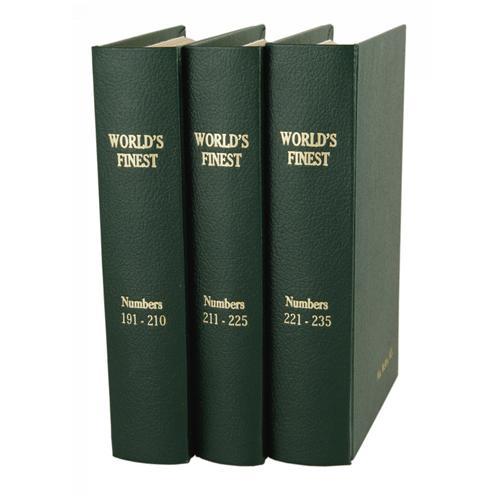 <B>World's Finest Comics #191-235 Bound Volumes (DC, 1970-76).</B></I> The third Superman-Flash race in #198-199 is the highlight of the run presented here. These are trimmed copies (in excellent condition) that have been bound into three hardcover volumes. The titles and issue numbers are embossed on the spines, and the name of the previous owner is embossed on the covers of the volumes. Overstreet VG 4.0 value for group = $275.