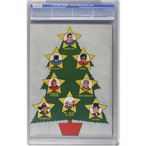 <B>World's Finest Comics #4 (DC, 1941) CGC FN 6.0 Off-white pages.</B></I> American skiing prowess is a bit of a sore subject in light of recent events in Turin, so watch how it's done <I>correctly</B></I> by Superman, Batman, and Robin, courtesy of cover artist Fred Ray! Those three are joined by many other superheroes in the issue, which also has the last appearance of crimefighting physician Young Dr. Davis. Overstreet 2006 FN 6.0 value = $789. CGC census 3/06: 3 in 6.0, 15 higher. <I>From the Collection of Harold Curtis.</B></I>