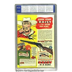World's Finest Comics #46 (DC, 1950) CGC VF+ 8.5 Off-white to white pages. What a refreshing cover -- once in a while we all need a break from seeing heroes dishing out knuckle sandwiches to villains, and this serene scene fills the bill perfectly as Superman, Batman, and Robin take to the sky... as kites. This is the highest-graded copy that CGC has certified as of this writing. Overstreet 2003 VF 8.0 value = $353; VF/NM 9.0 value = $502. Important notice: Heritage usually auctions material at the rate of 200-250 lots per hour. On some occasions eBay Live bid software or the Internet may not be able to keep up with the pace of the auction. We recommend placing a realistic absentee bid now as insurance to avoid disappointment. Occasionally the auctioneer may eliminate or reject an eBay Live bid, and the auctioneer may also reopen a lot after the close of the eBay live bidding (usually because we missed an audience bid), and may reject your bid even if it shows you as the winning bidder. By bidding via eBay Live, you agree that Heritage may award the lot to another bidder at its sole discretion under the circumstances described above or any other reasonable circumstances. Since eBay bids are not shown to us until we open the lot on the floor, we treat those bids just like floor bids. In most cases the floor responds before the eBay bid is presented to us, due to Internet lag time, so for consistency we have made it a policy that floor bids are always considered first over tie eBay live bids. Also please note that all Heritage lots purchased through eBay Live carry a 20% Buyer's Premium. Please make sure you read the Terms and Conditions before you bid.