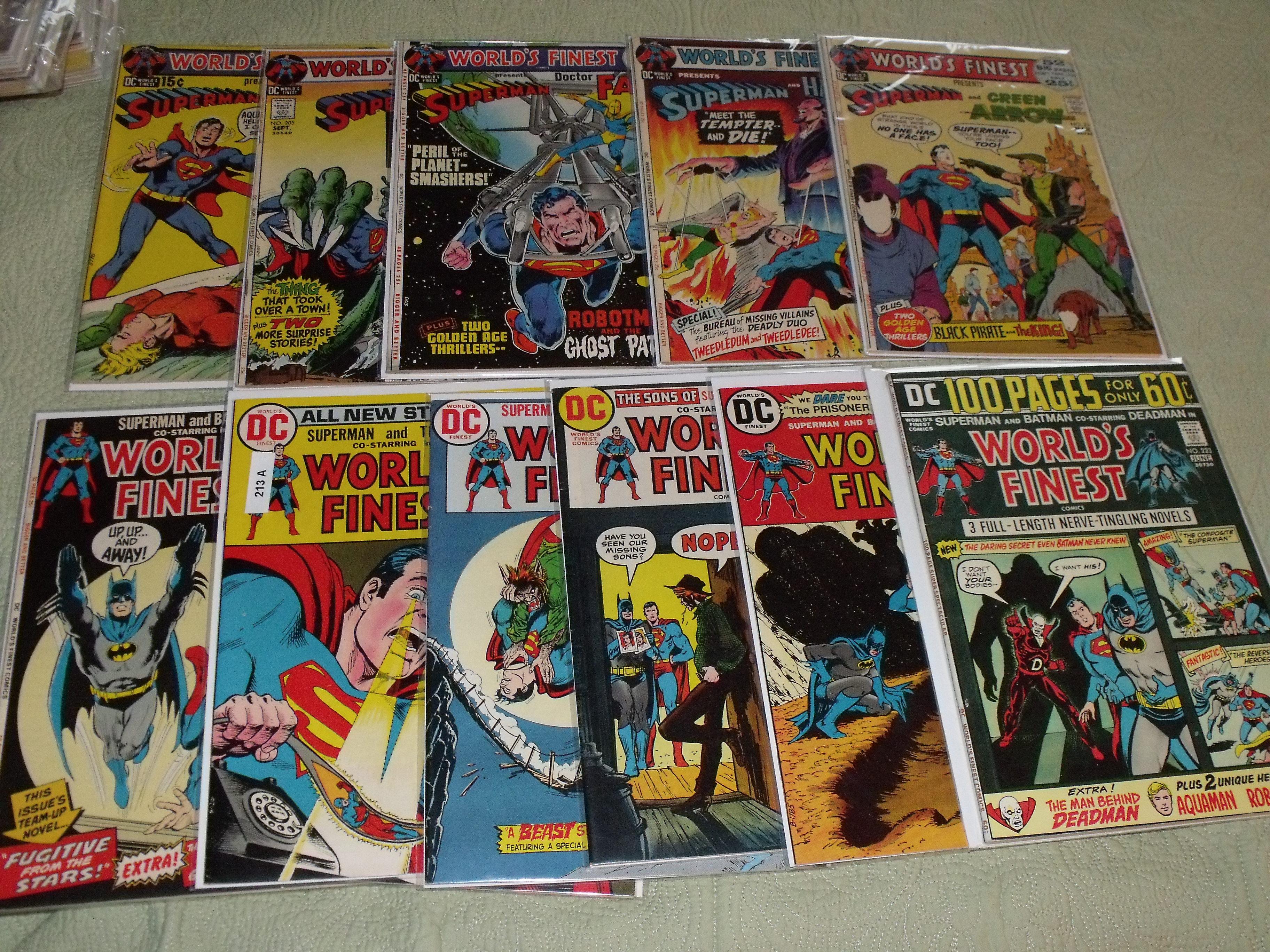 World's Finest Comics #203, 205, 208-211, 213 (x2), 214, 216, 219, 223. 12 issues total. Avg condition ranges from FN to VF