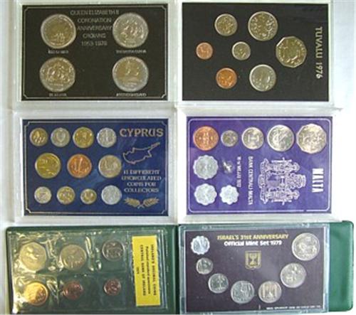 World, sets and coins: Gibraltar, AR proof crown, 1980, Queen Mother, FDC, Zambia, proof crown, 1965, some discolouration, otherwise uncirulated, Tuvalu proof set, 1976, FDC (7 coins), mint sets for Cypus, mixed date, Ireland, polished standard, 1971, Israel, 1979, Malta, 1972 and cupro-nickel crowns, various, uncirculated (5) (46 coins)