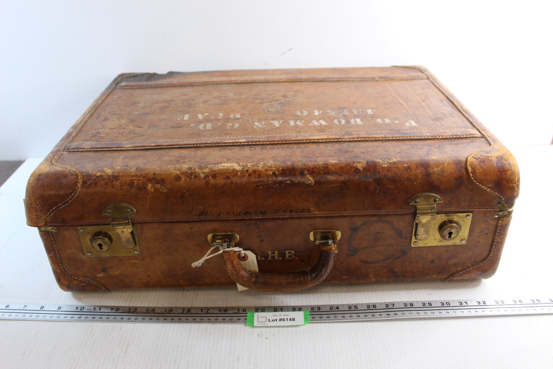 World war ll RCAF Pilot Officers Leather Suit Case, 24.5'' x 18'' x 8'', Name On The Side- Some Damage