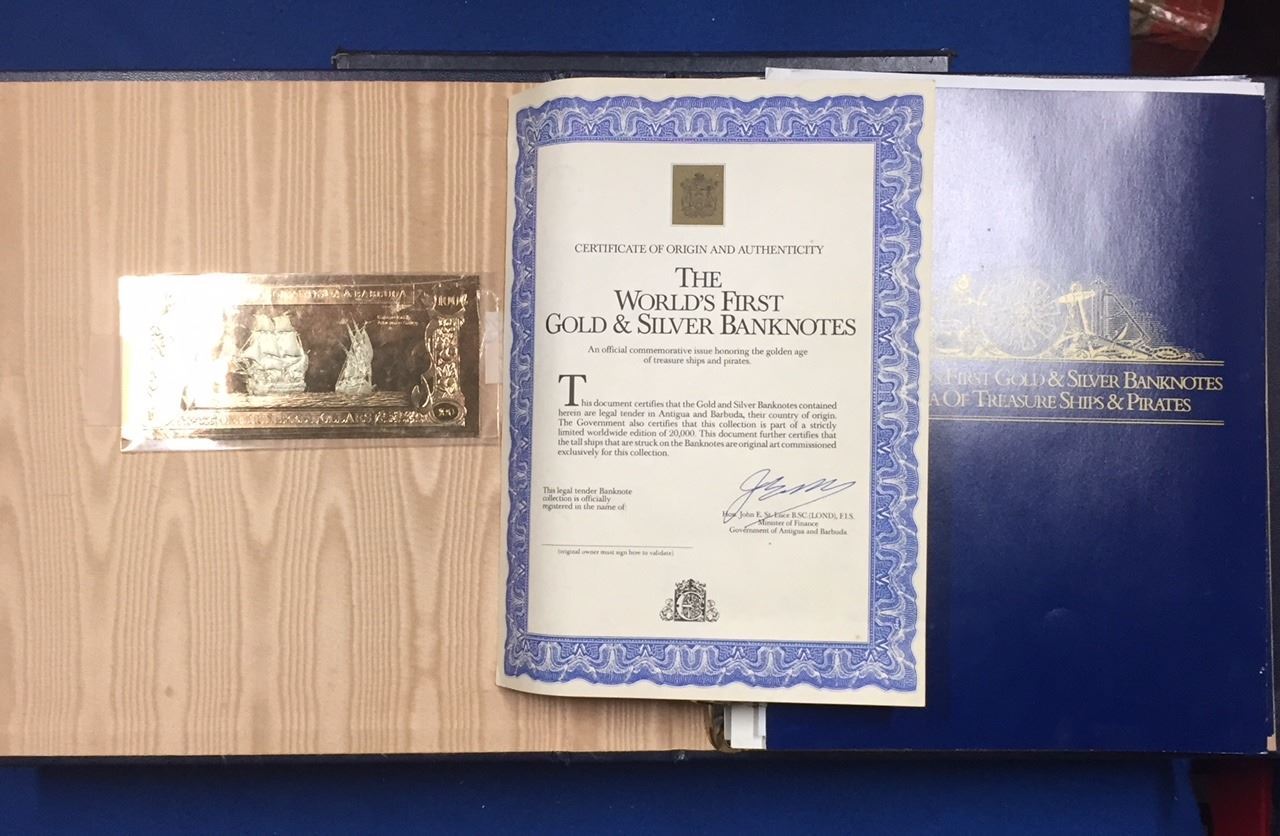 Worlds First Gold & Silver Banknotes The Saga of Treasure Ships & Pirates. Lot of 13 banknotes.