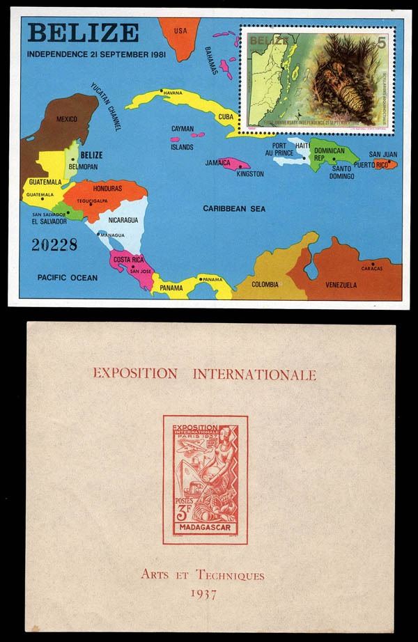 Worldwide, 1937-89, an accumulation of souvenir sheets. Approximately 1,000 sheets featuring something from virtually every country around the globe, modest amount of duplication; many are mint never hinged, some are lightly hinged and many have cancellations; neatly housed in card mounts and identified with country and catalog number and mostly with a catalog value from 2015-2020; catalog values range from 80¢ up to $100, this lot is perfect for a worldwide dealer or collector who loves souvenir sheets! We have imaged a few to give a flavor of the lot, overall VF