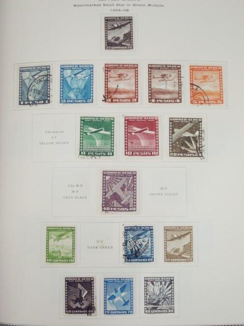 Useful lot of mostly several (100) used stamps along with some unused in country collections in a Scott album. Most are Central or South American collections with Mexico, Salvador, Chile, etc but then there is also some Czech material and Congo items. Nee