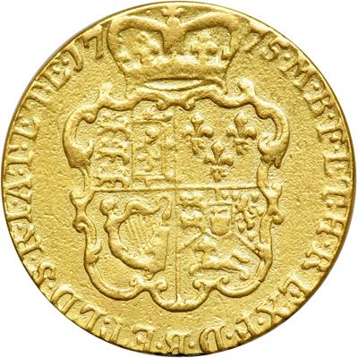 Worldwide. Lot of World Gold:,Brazil. 400 Reis, 1734-M. KM-145. Very Good; Great Britain. Guinea, 1775. KM-604. Ex-Jewelry. Heavy marks and solder on edge. Very Good; Spain. ½ Escudo, 1786-DV (Madrid). KM-425.1. Fine. Sold as is, no returns. Lot of 3 coins.