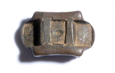 Worldwide. Odd and Curious. China. Three-Stamp Ingot. Silver. 192.8 grams. 5 Tael weight. Used in trade. Very Fine.