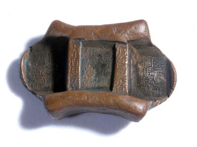 Worldwide. Odd and Curious. China. Three-Stamp Ingot. Silver. 184.6 grams. 5 Tael weight. Used in trade. Very Fine.