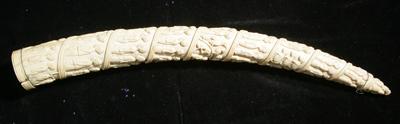 Worldwide. Odd and Curious. Ivory Tusk. Probably from the Far East Region. 20 inches long. Carved figures of animals and people.