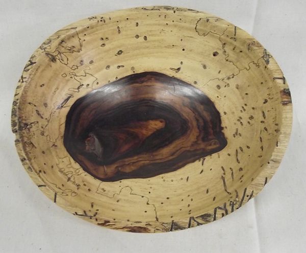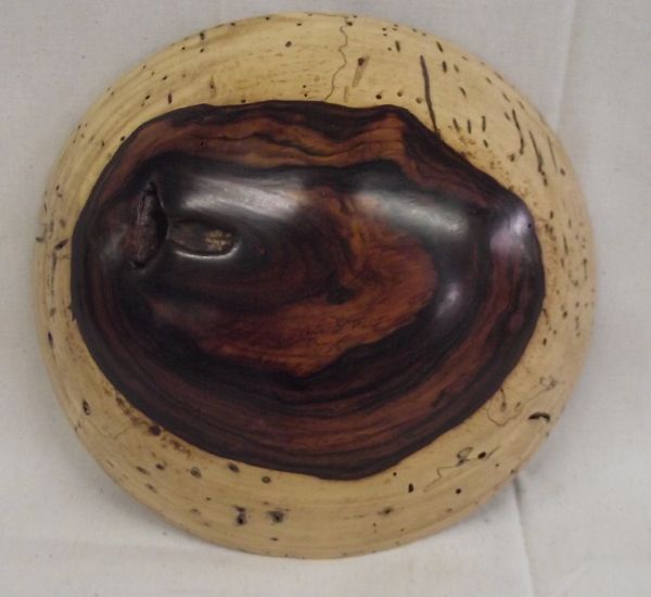 Wormwood with Teak Insert Wooden Bowl. Bowl measures approx. 2''H x 7.25''L x 6.5''W