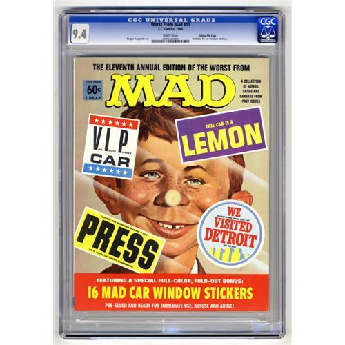 <B>Worst From Mad #11 Gaines File pedigree (EC, 1968) CGC NM 9.4 White pages.</B></I> Includes 16 car window stickers. Overstreet 2006 NM- 9.2 value = $95. CGC census 03/06: 2 in 9.4, none higher.