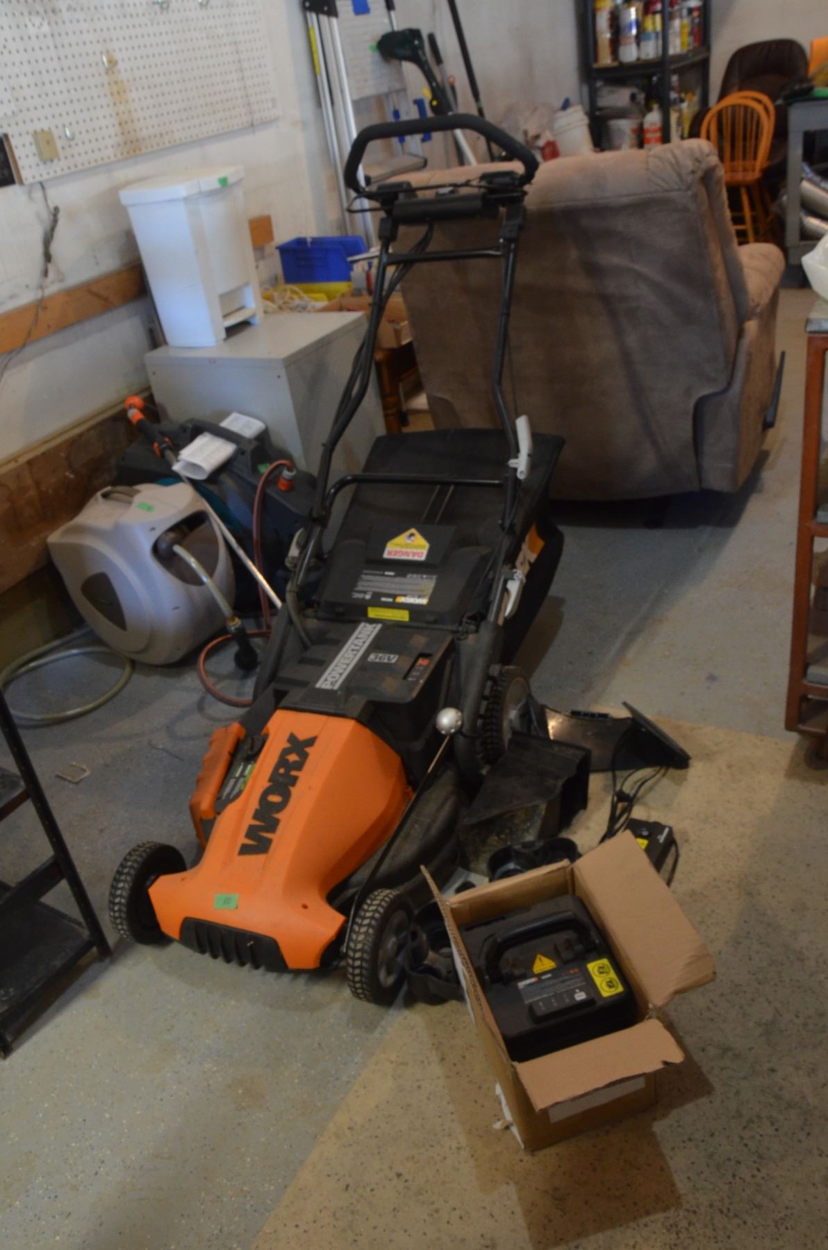 Worx Power Bank 36V Electric Lawn Mower w/ Attachments, Charger & Extra Battery