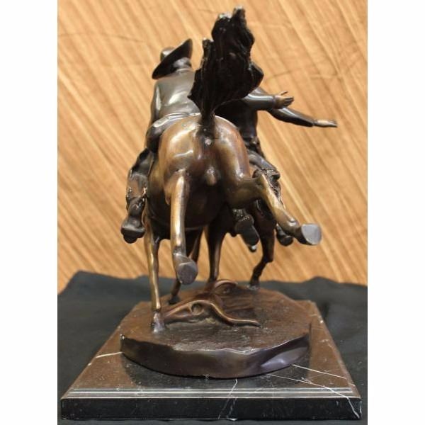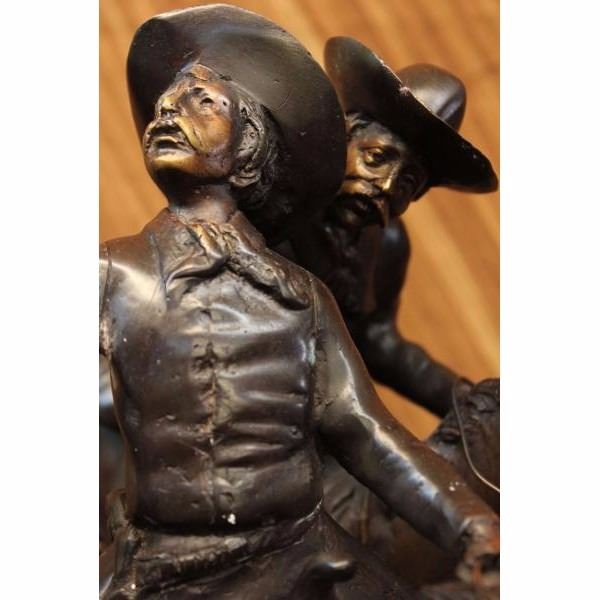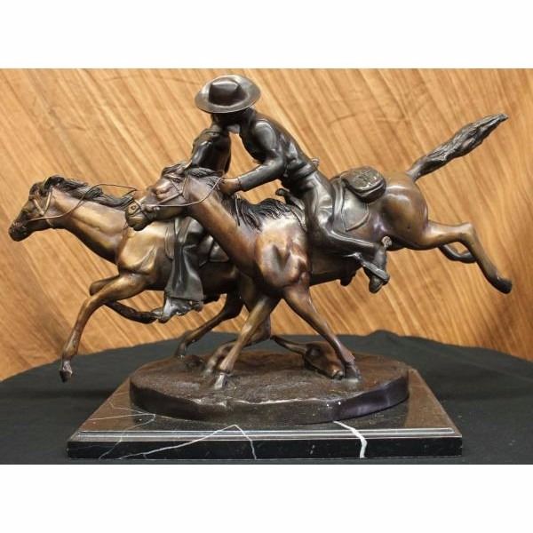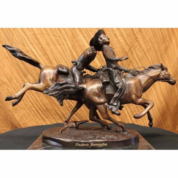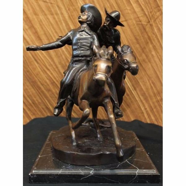 The Sculpture Depicts A Wounded Calvary Soldier Being Supported By A Comrade While The Horses Are In Full Gallop. Please Notice That The Entire Sculpture Is Being Supported By Only Two Hooves Touching The Ground. The Action Is Superb The Whole Group In The Most Natural Manner Possible. This Beautiful Bronze Was Created In The Lost Wax Bronze Casting Process And Has Been Hand Finished By Skilled Artists. Each Piece Is A One Of A Kind And Is Mounted On A Beautiful Solid Marble Base. Bronze dimensions with marble base: Height 14 X Width 22 inches. Weight: 35 lbs.
