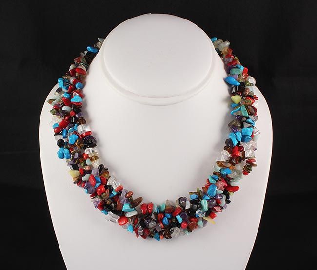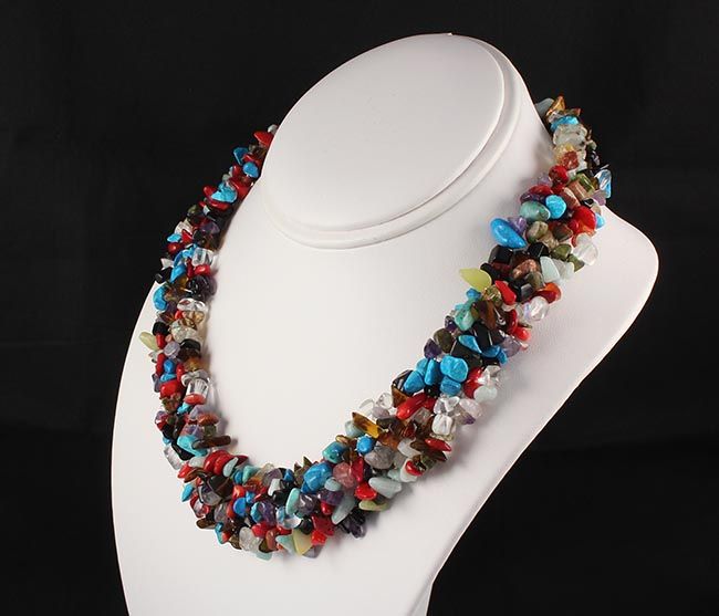 Woven Multi-Strand Natural Chip Beads Necklace **|**|** 620.50CARAT Miss Gorgeous Mix Semi-Precious Stone and Crystal Chip Necklace with metal lock ; MSRP: $0