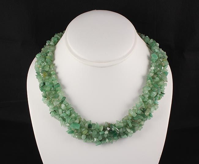 Woven Multi-Strand Natural Chip Beads Necklace **|**|** 576.50CARAT Miss Gorgeous Green Adventurine Chip Multi-Strand Necklace with metal lock ; MSRP: $0