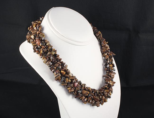 Woven Multi-Strand Natural Chip Beads Necklace **|**|** 774.50CARAT Miss Gorgeous Tiger Eye Chip Beads Multi-Strand Necklace with metal lock ; MSRP: $0