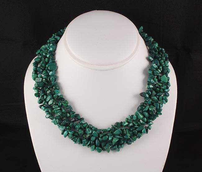 Woven Multi-Strand Natural Chip Beads Necklace **|**|** 571.00CARAT Miss Gorgeous Malachite Green Chip Multi-Strand Necklace with metal lock ; MSRP: $0