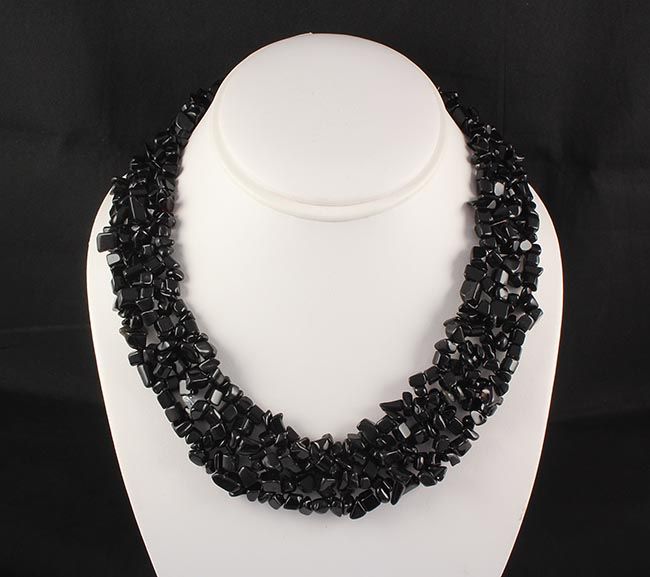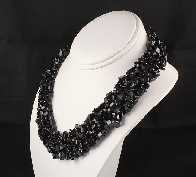 Woven Multi-Strand Natural Chip Beads Necklace **|**|** 647.50CARAT Miss Gorgeous Black Obsidian Chip Multi-Strand Necklace with metal lock ; MSRP: $0