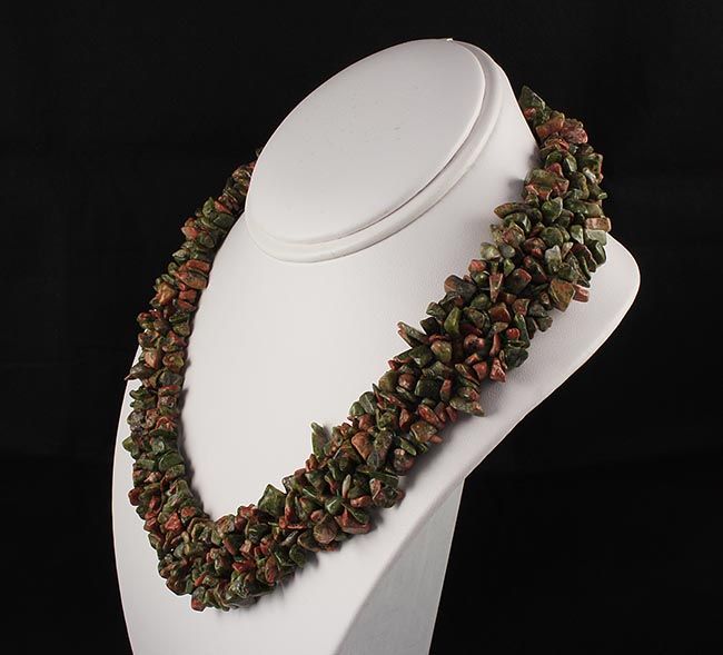 Woven Multi-Strand Natural Chip Beads Necklace **|**|** 757.50CARAT Miss Gorgeous Earthly Unikite Chip Multi-Strand Necklace with metal lock ; MSRP: $0