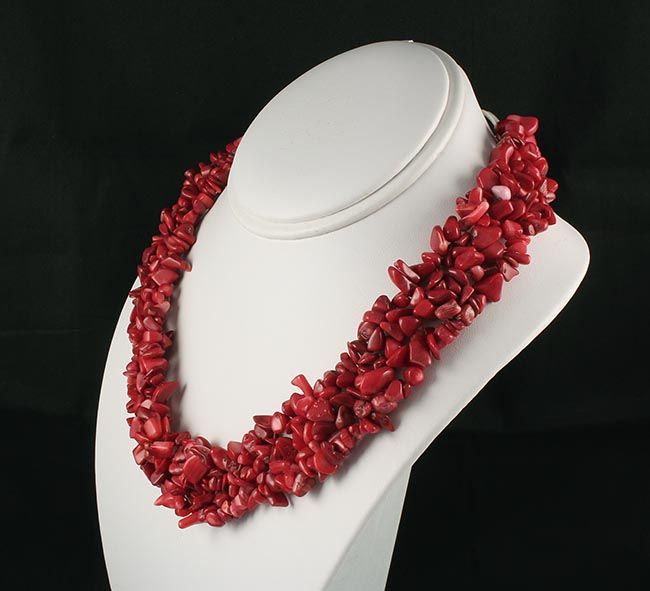 Woven Multi-Strand Natural Chip Beads Necklace **|**|** 593.00CARAT Miss Gorgeous Deep Red Coral Chip Multi-Strand Necklace with metal lock ; MSRP: $0