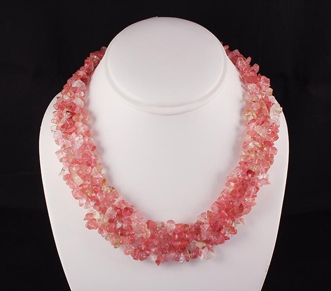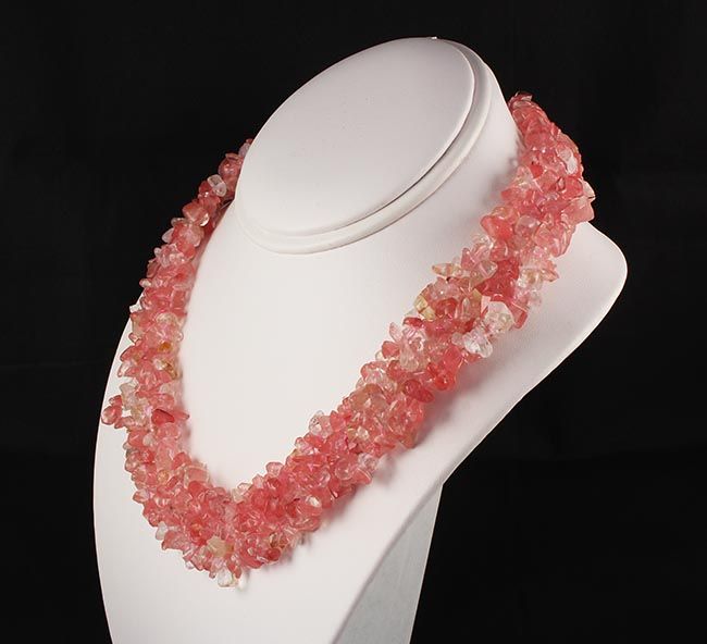 Woven Multi-Strand Natural Chip Beads Necklace **|**|** 555.00CARAT Miss Gorgeous Rose Quartz Chip Multi-Strand Necklace with metal lock ; MSRP: $0
