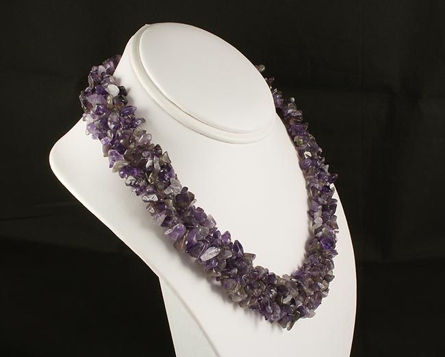 Woven Multi-Strand Natural Chip Beads Necklace **|**|** 689.00CARAT Miss Gorgeous Amethyst Quartz Chip Multi-Strand Necklace with metal lock ; MSRP: $0