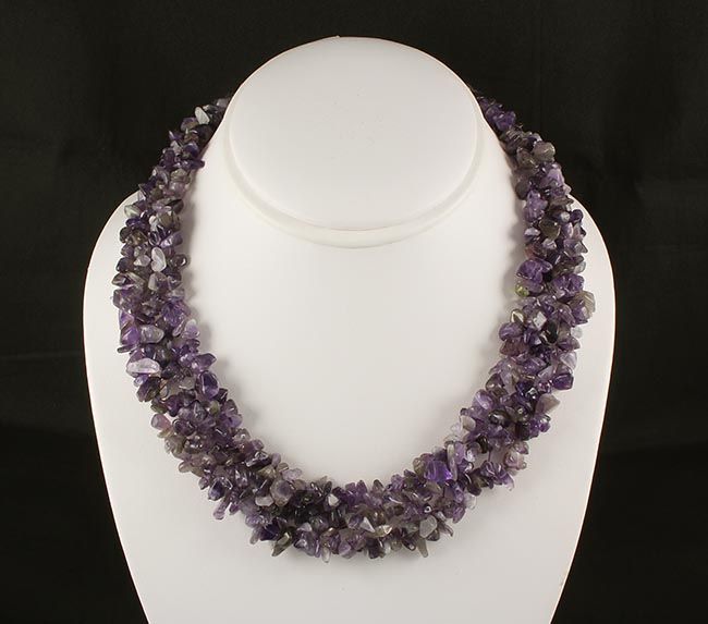 Woven Multi-Strand Natural Chip Beads Necklace **|**|** 665.50CARAT Miss Gorgeous Amethyst Quartz Chip Multi-Strand Necklace with metal lock ; MSRP: $0