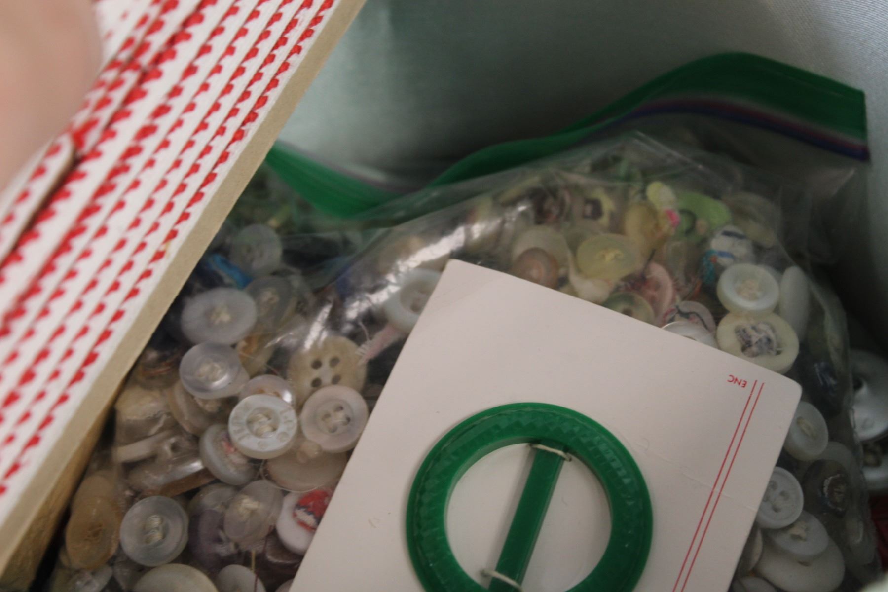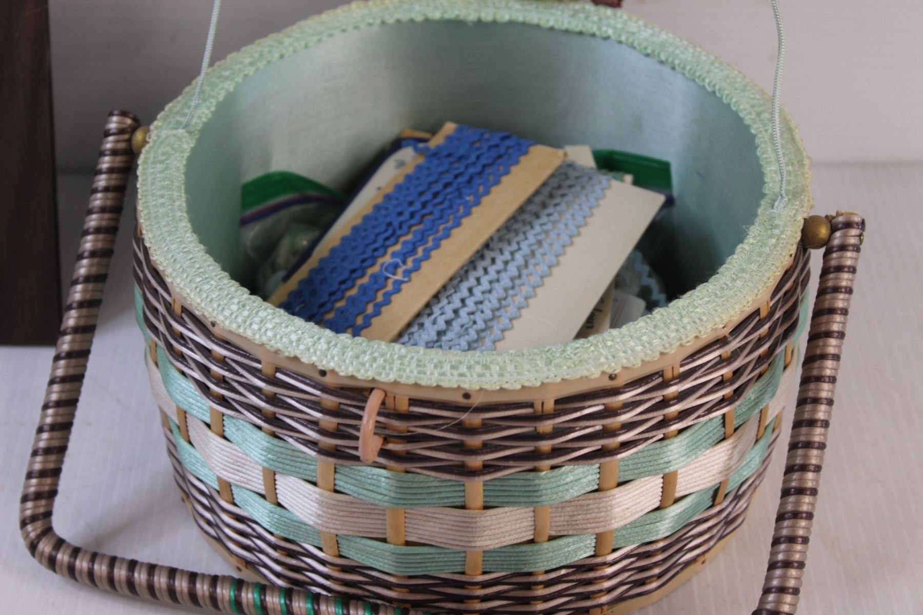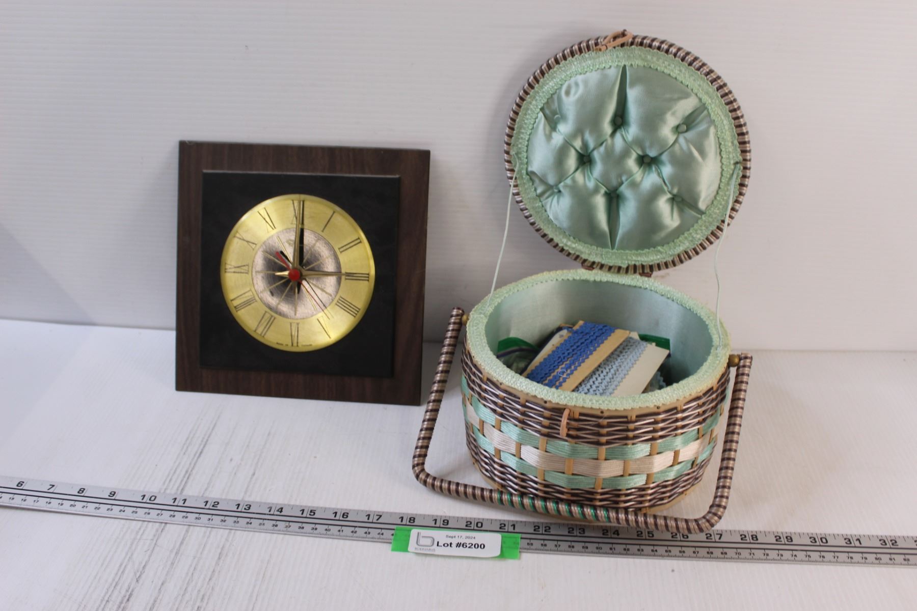 Woven Sewing Box w/Contents & Ingram Battery Powered Clock - Untested