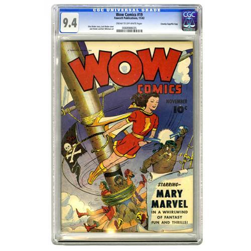<B>Wow Comics #19 Crowley Copy pedigree - File Copy (Fawcett, 1943) CGC NM 9.4 Cream to off-white pages.</B></I> It's Mary Marvel meets Jolly Roger! The Phantom Eagle, Commando Yank, and Mr. Scarlet also appear. Overstreet 2005 NM- 9.2 value = $600. CGC census 12/05: 1 in 9.4, none higher.
