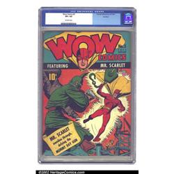 Wow Comics #3 Rockford pedigree (Fawcett, 1941) CGC VF+ 8.5 Off-white pages. Many of the issues of this title are relatively uncommon, which makes a copy in this nice of a condition truly scarce. Only one other copy of the issue has been graded higher by CGC, according to the most recent census data. This is a surprisingly reasonably valued book by Overstreet's latest guide. Overstreet 2002 VF 8.0 value = $713. Important notice: We expect to be auctioning lots at the rate of 200-250 per hour. Sometimes eBay Premier live bid software cannot keep up with that pace, so we strongly recommend that you place a realistic proxy bid now as insurance to avoid disappointment. Also please note that all Heritage/CAA lots purchased through eBay Premier carry a 20% Buyer's Premium. Please make sure you read the Terms and Conditions.