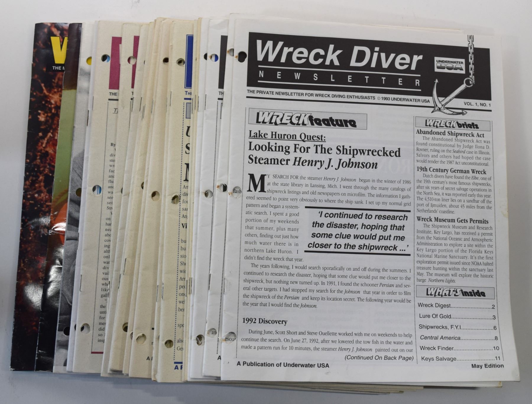 This lot contains issues of the wreck diving newsletter publication: Wreck Diver Newsletter. Wreck Diver Newsletter features article topics that include mostly ship and U-Boat wreck histories. Of particular interest in this group of issues are several treasure wreck histories. Issues included in this lot: