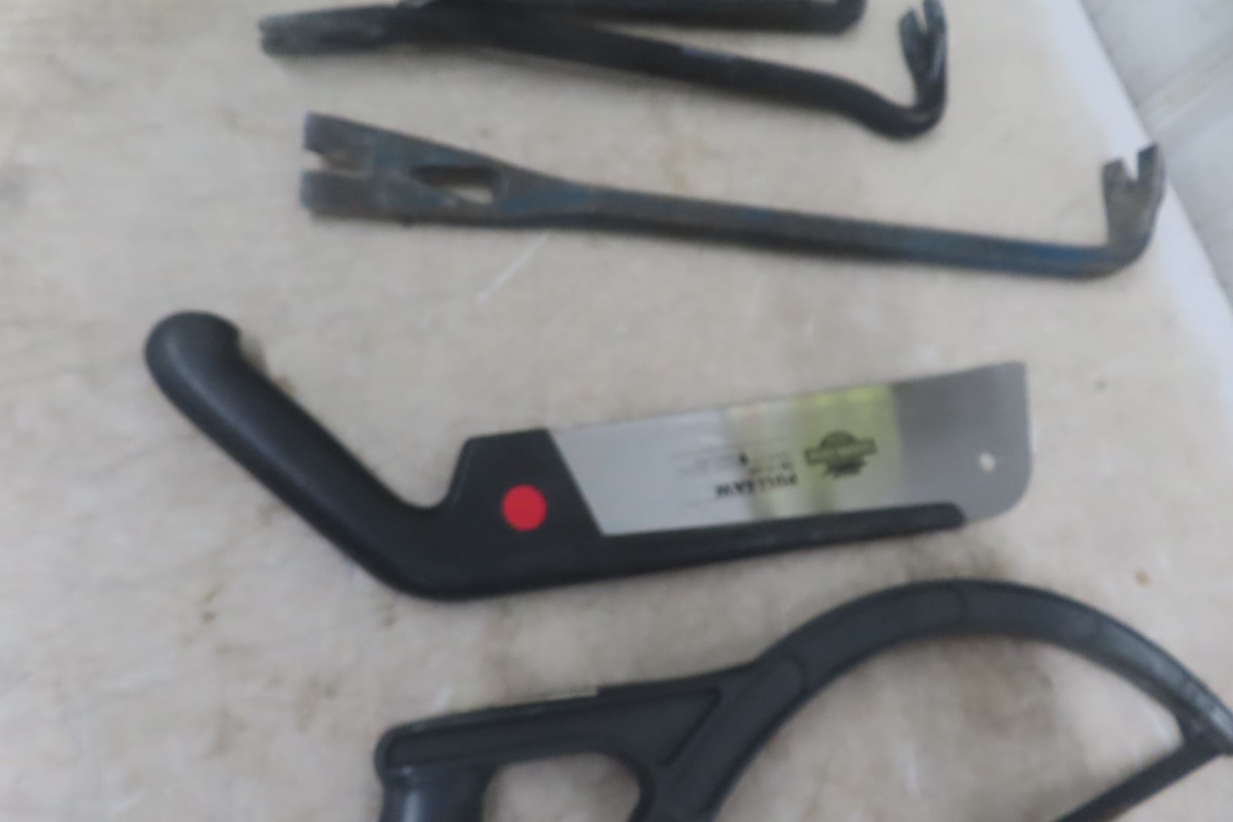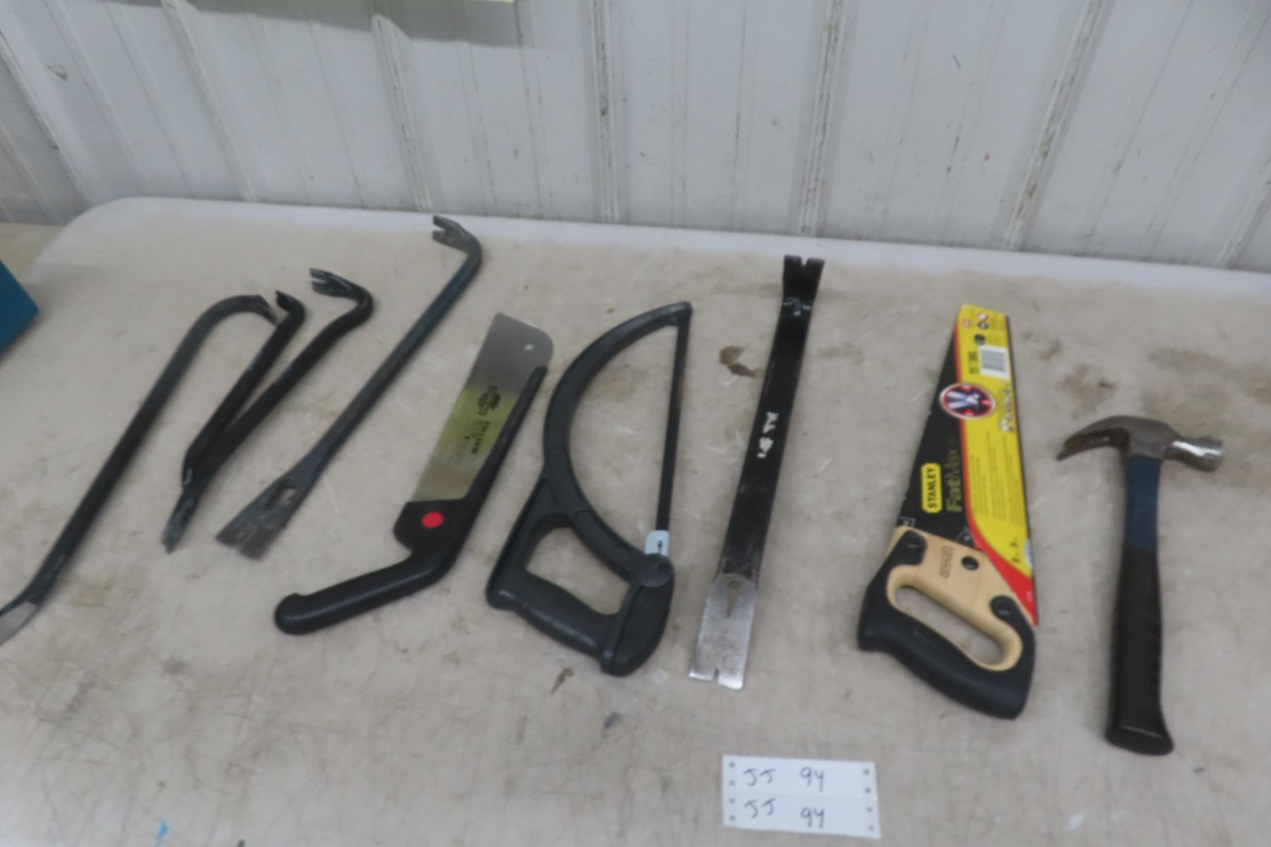 Wrecking Bars, Saws, Hammers, Some New Some Used.