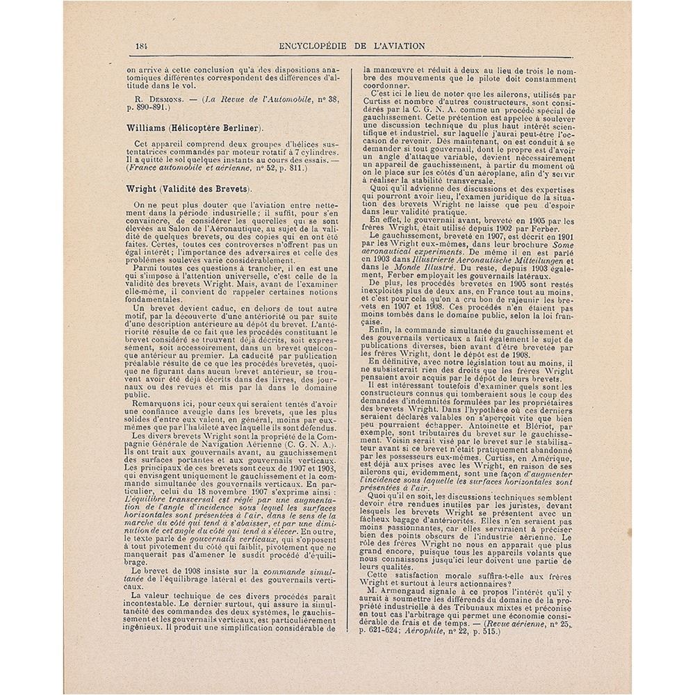 Original December 1909 issue of Encyclopedie de l'Aviation, 8.5 x 10.5, published in Paris and containing an alphabetical listing of 782 previously published articles. Scattered toning and soiling to covers, as well as scattered creases and handling wear, otherwise fine condition.
