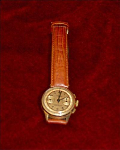 Chronographe bracelet en or 18 cts, signé RICHARD, mouvement Landeron, années 1960